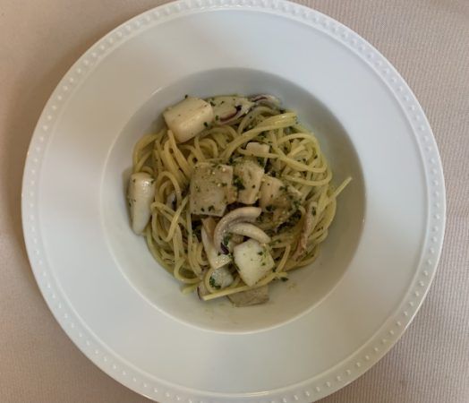 イカがゴロゴロ入っていて、スープを飲み干す美味しさに、「フォカッチャを残しておけば良かった」と友人。