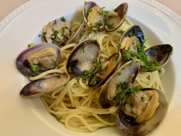 貝類は私の大好物。新鮮な、甘みのあるアサリたっぷりのボンゴレビアンコは、後を引く美味しさです!
