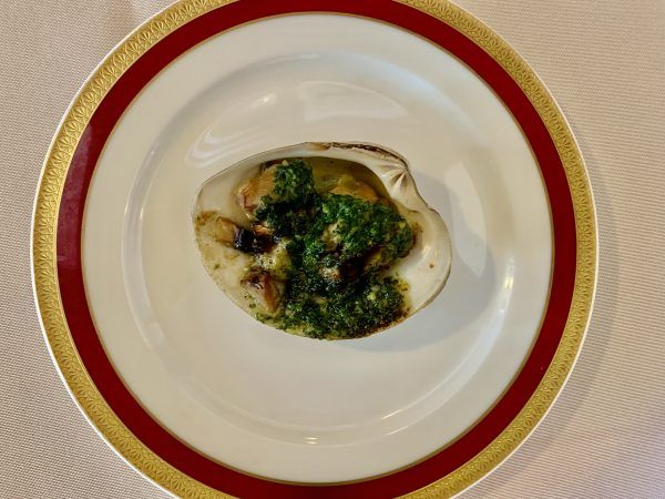 ふた皿目は、ホンビノス貝とつぶ貝とマッシュルームのブルギニョン。深い味わいに、早くも満足度Maxです!
