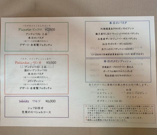 この日はパスタをメインとしたランチコース「piccolo(ピッコロ)」を予約していました。