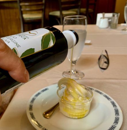 ソフトクリームの上から、イタリア・シチリア産オリーブオイルがたっぷり注がれました。