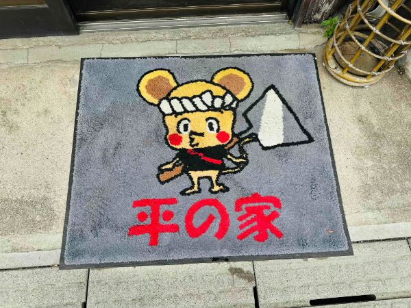 入り口のマットには、備後府中焼きをPRするマスコットキャラクター「ミンチュー」の姿が♪