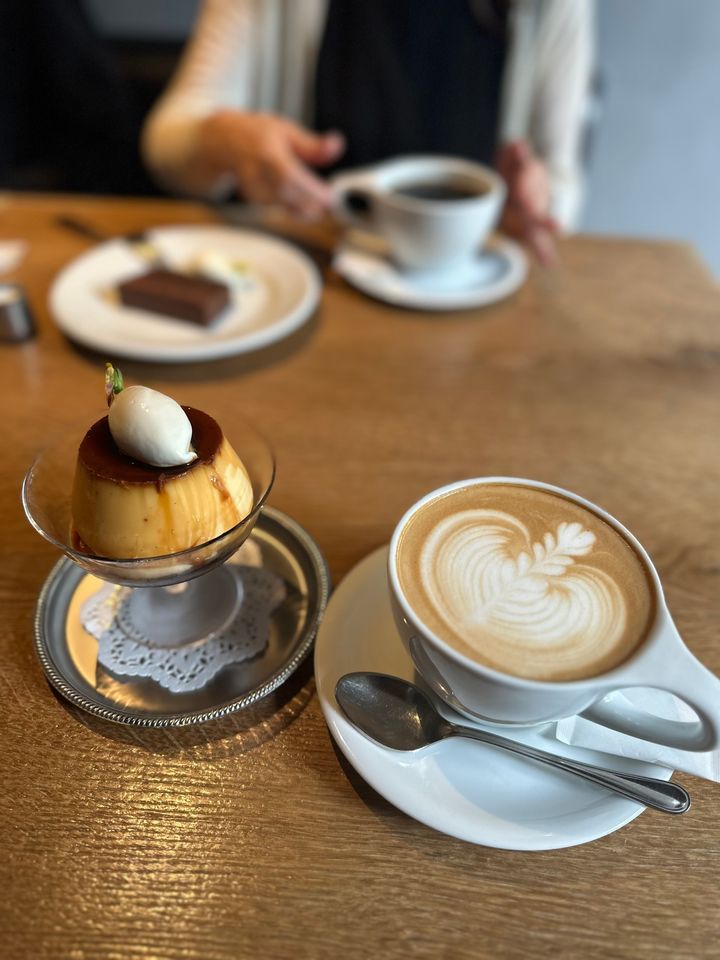 自家製プリン830円 レイヤーガトーショコラ700円カフェラテ900円 コーヒー800円