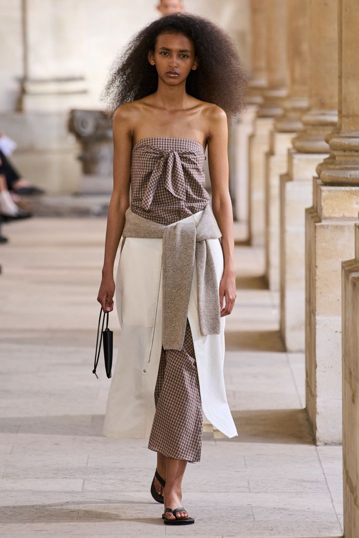アメリカにも「fool's spring(愚か者の春)」という言葉がある。晩冬または初春に、春のように暖かい日が訪れたかと思えば、再び寒さが戻ってくることを言う。今回のコレクションは、そんな移り変わりの激しい季節だからこそ見られる、微笑ましい光景の数々にオマージュを込めていた。風で乱れた髪や服。この時期ならではの、気温に合わせて調整できるレイヤーコーデ。必要以上に着込んでしまい、重ねたアイテムを1枚1枚脱ぎ、腰などに巻く様子。春はすぐそこまで来ている。冬と春の間は特に曖昧になりがちな季節の境界線に目を向けることで、岩井は季節の変わり目に実にふさわしい、バラエティに富んだワードローブを生み出したのだ。