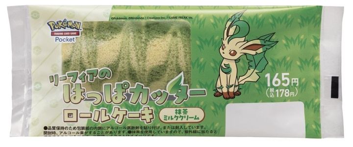 リーフィアをイメージした模様が特徴的なロールケーキは税込178円です。抹茶ミルククリームを巻いたロールケーキは食後のデザートとしても、おやつにもちょうどいいサイズ感がうれしいですよね。