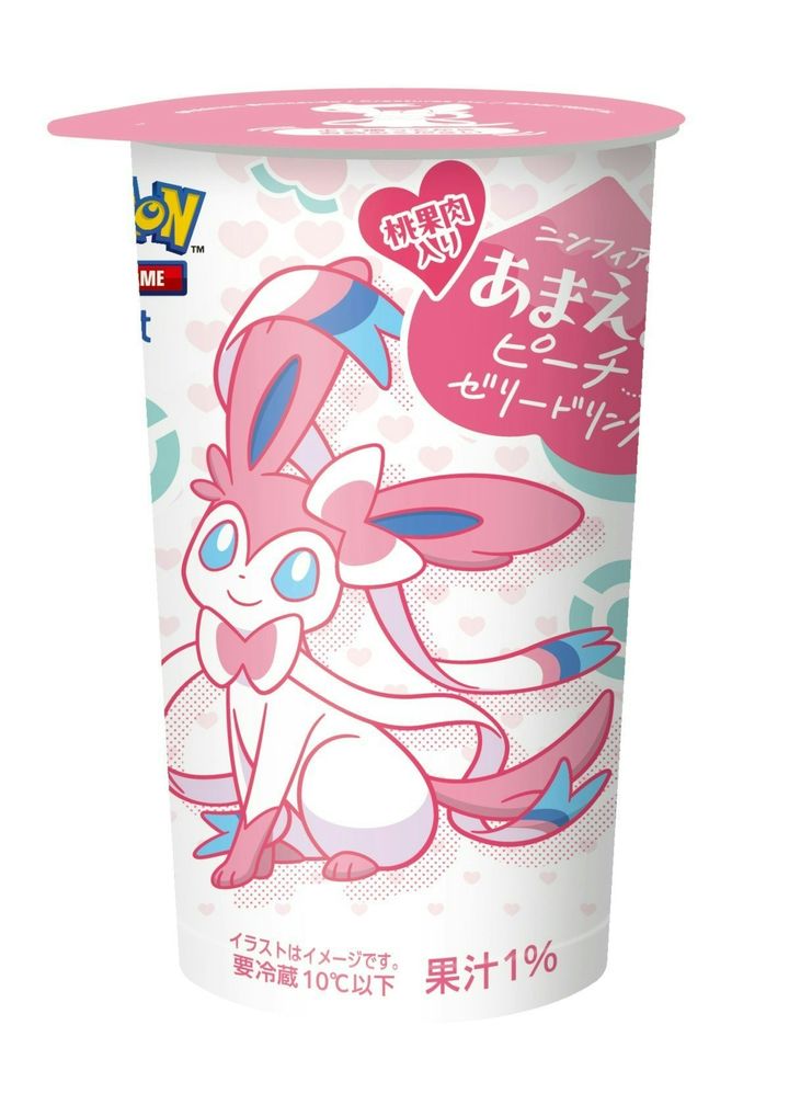 ピンク色のパッケージががとてもかわいらしいゼリードリンクは税込268円です。桃果肉入りのゼリーで飲みごたえも十分。ニンフィアのパッケージは2種類あるのでコンプリートしたくなりますね。