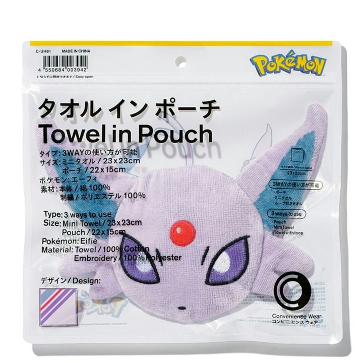 エーフィ、ブラッキーがデザインされたタオルinポーチは税込2,000円です。ポーチ、タオル、タオル付きポーチの3WAYで使える多機能なポーチは持っているだけで自慢できそう。見た目のかわいさだけでなく、コンパクトに持ち運べるところはポイントが高いですよね。