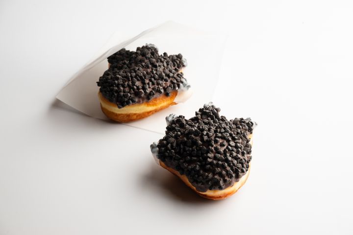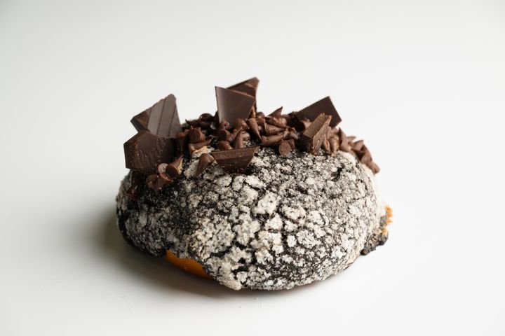 チョコレートとココアクッキーでゴジラの足跡をイメージした、ユニークなルックスのドーナツ。中にやわらかい「リッチ」生地を使用した、ふんわり食感が特徴。