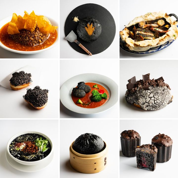 ほかにも、醤油味の黒炒飯に豆板醤のピリ辛がアクセントのあんを合わせ、ゴジラの背びれに見立てた揚げワンタンをトッピングした梅蘭の「ゴジラあんかけ黒炒飯」や、生麺に竹炭で黒く仕上げた山形牛のボロネーゼソースを絡め、ゴジラの色を表現したヒルズ ダル・マットのパスタ「漆黒の山形牛ラグー 溶岩がけ」など大人向けのメニューもいろいろあり。