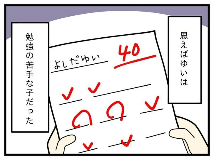 ・我が子のことのように読んでいます。 幼稚園のときから感じていた違和感。小学校に入学して、ノートを書くのが遅く授業についていけないのを参観日で目の当たりにして、小学一年生だからこんなものか、と思っていたのがうちの子が、他の子ができていることができていないんだと気づいたときの絶望感。それから少しずつできることが増え、安堵しつつ、担任の先生から勧められた発達検査。まったく流れが一緒です。そのあと検査結果もそこまであからさまに悪いものではなかったのですが、担任の先生から支援級への通級を進められ、そのときが私にとっては一番ショックでつらかったです。 そこまでしないとダメですか、と言ったことに対し「息子さんのいいところを伸ばして、困っているところはさっと助けてあげられるように学校としても対応していきたい」という旨を言われ、覚悟を決めました。 あのとき担任の先生がはっきり言ってくださらなかったら、息子の学校生活はもっと困難でつらいものになっていたと思います。 今は小4で支援級に通級しながらも楽しく学校に通っています。通常級だけでは絶対にもっと勉強に遅れを取ったりして苦しかっただろうと想像できるので、ゆいさんやお母さが療育手帳を取得することで特性と向き合いつつ、穏やかな日々を過ごせることを願います。