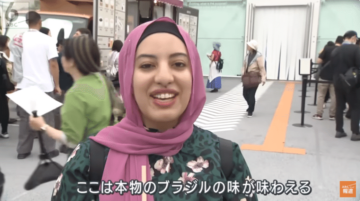 この日のメンナさんの勤務は午後4時まで。この後、夜の万博を楽しむというメンナさんに記者が同行してみました。お隣のブラジルパビリオンの前にあるフードトラックで本格派のブラジルコーヒーを楽しんだ後、メンナさんが向かったのは、お気に入りというヨルダンパビリオン。