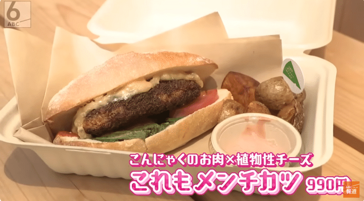 また、植物性のドリンクに、卵や牛乳不使用のソフトクリーム。そして、おからこんにゃくのお肉とアーモンドから作ったチーズを合わせた「メンチカツサンド」などヴィーガンメニューも販売されています。香港から来た女性は、植物性のチーズと気づかずにメンチカツサンドを購入したそうですが、「いつも食べてるチーズと変わらない」とヘルシーグルメを堪能していました。