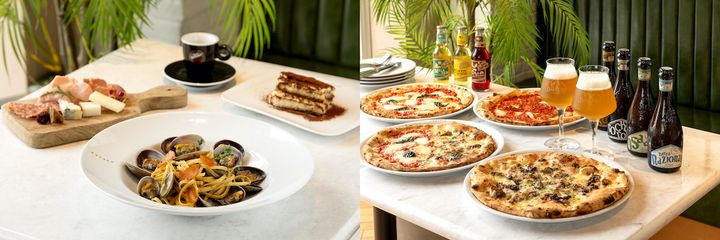 料理はイタリア各地域の代表的な料理を、現地と同じ方法で、伝統的なレシピと厳選された上質な食材を使って調理。レストランで味わえるパスタはイタリア・ナポリで伝統的な製法で作られているイタリア産小麦粉を100%使用し、ピッツアはイタリア直輸入の小麦粉の生地から毎日お店で手作りしています。イタリア直輸入のチーズはホールから切り立てを販売するなど、現地と同じクオリティの食事を楽しむことができます。