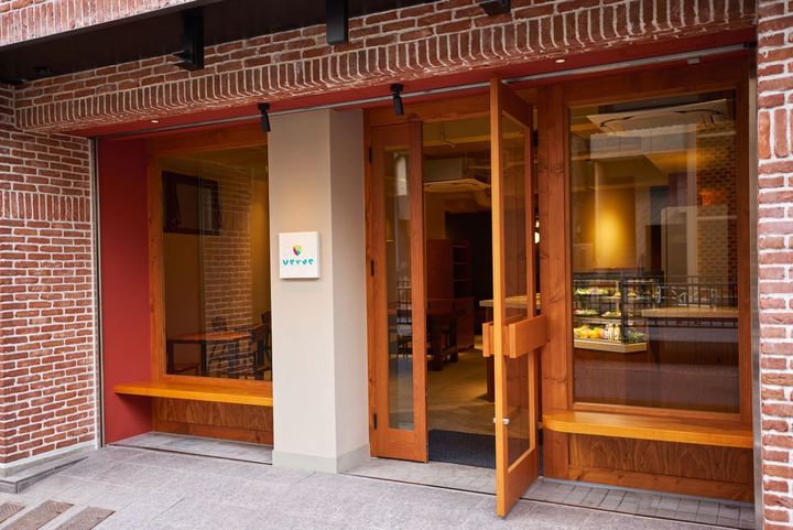 東京メトロ・明治神宮前〈原宿〉駅から徒歩約7分。原宿と渋谷をつなぐキャットストリートにある「verde(ゔぇるで)」は、彩り豊かな食材を組み合わせたメニューが楽しめるカフェ。おしゃれなレンガ造りの外観と、カラフルな看板が目印です。