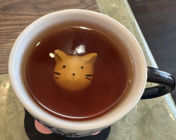 この日、私がお店にいた時間は4時間くらい。途中にゃんこがのぞいている可愛い紅茶をいただき、 ランチもいただきました。