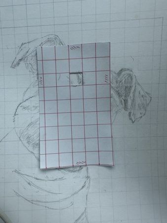 次に絵を描く紙にも方眼を引きます。引き終わるとどちらにも同じグリット線が入るので精密な絵が描けるようになるのだそうです。