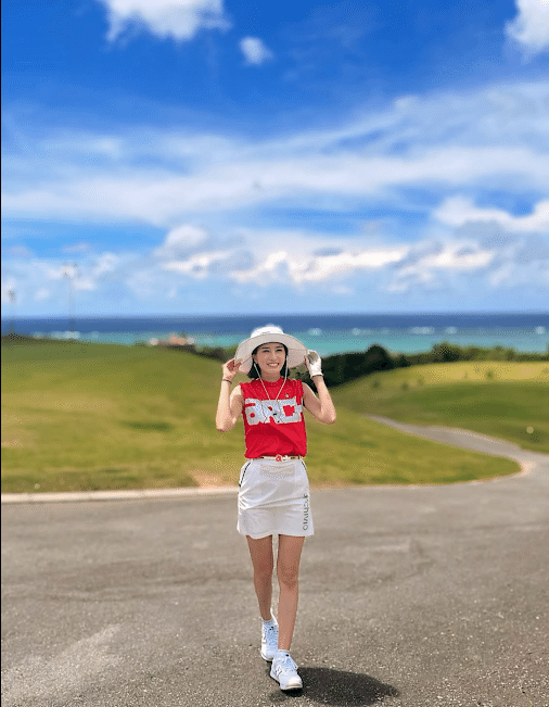 【着用ブランド】トップス/New Balance、スカート/JACK BANNEY、ベルト/PING、シューズ/adidas、サンバイザー/TOMMY HILFIGER、グローブ/Taylor Made