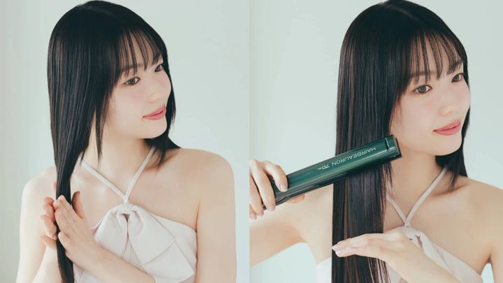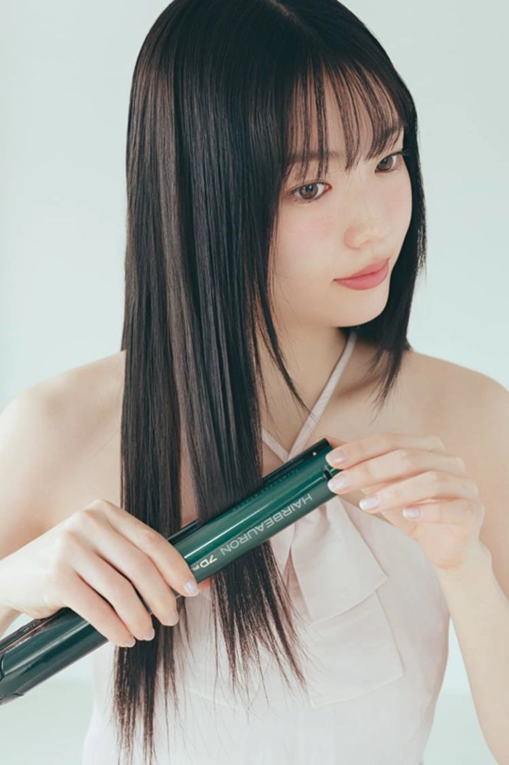 こうするとダメージも少なく、髪表面をきれいに整えられる。レイヤーが入っている髪は、毛先が内向きになるようにアイロンを傾けながら通すと◎。