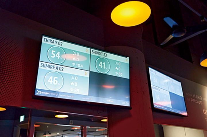 最新のセンサーで運動中の心拍数を計測できるのも魅力。モニターがオレンジ色になるまで心拍数が上がると脂肪燃焼効果が高まる。