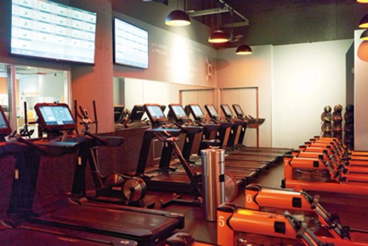 暗めでおしゃれなオレンジのライティング、レッスン中に流れるアップテンポな音楽でより一層、ワークアウトの気分を高められる。