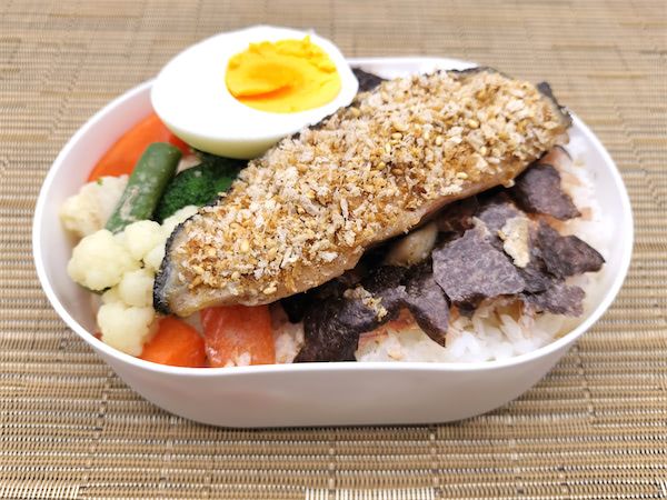 続いて魚を口へ運ぶと、パン粉の衣が軽くサクッとした直後に柔らかい身の食感が来て、不思議なことにウスターソースの味と風味が白身魚にとてもよく合っていました。細かくしたのりとかつお節、玉子もお弁当感を盛り上げていて、本当においしくてちょっと贅沢なお弁当でした。これは外に持って行きたくなります。