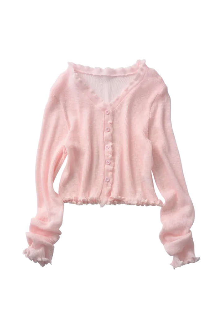 夏も大活躍必至なシアー素材のカーディガン。肌寒いときは羽織るもよし、肩掛けでこなれ感を出すもよし。使い方は自由自在で、持っていて損なし!