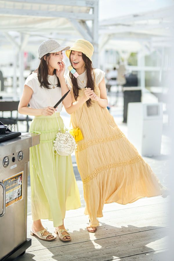 掲載:美人百花2025年7月号「レディの夏イベコーデは『あくまでフェミニン』♡」 撮影/西崎博哉(MOUSTACHE) スタイリング/井関かおり ヘアメイク/朝日光輝(SUNVALLEY) モデル/石川恋、宮本茉由 文/高坂知里 再構成/美人百花.com編集部 撮影協力/キラナガーデン豊洲、KAIKA 東京 by THE SHARE HOTELS