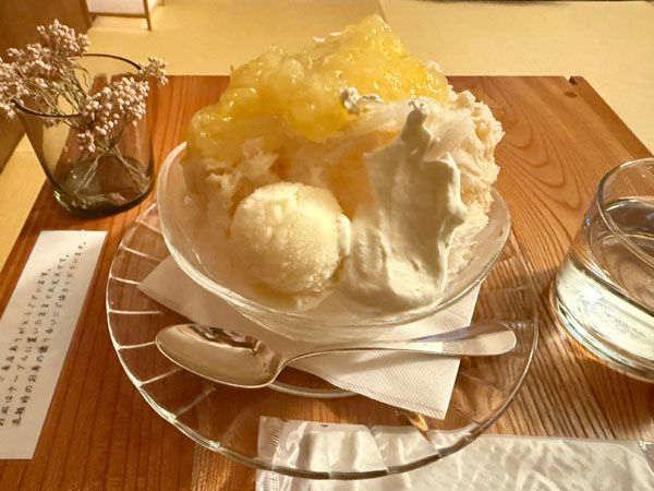 生クリームのコクとさっぱりした柑橘が相性抜群で、丁寧に作られたケーキのようなスイーツ系かき氷でした。