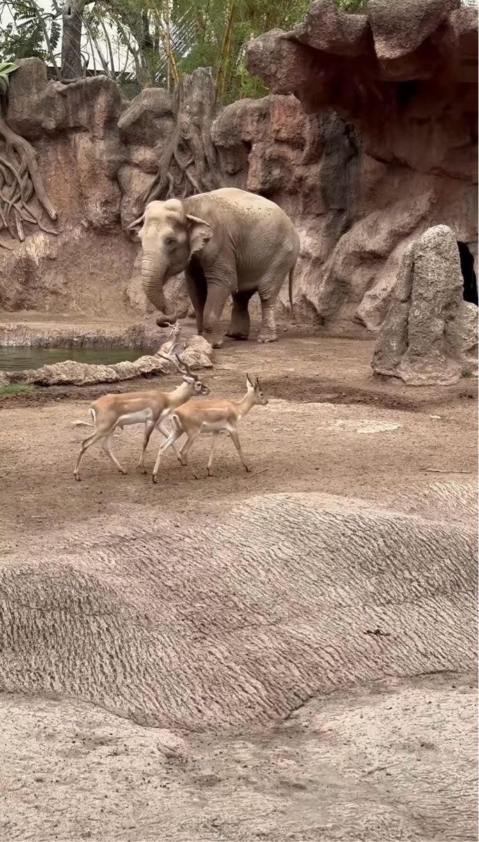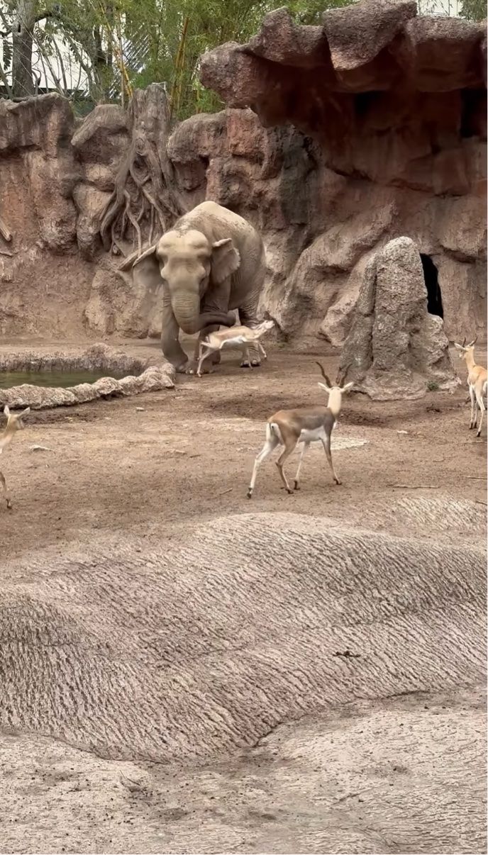 池から上がれなくなったガゼルをゾウがレスキュー! 動物たちが助け合うその姿は、こちらからご覧いただけます。