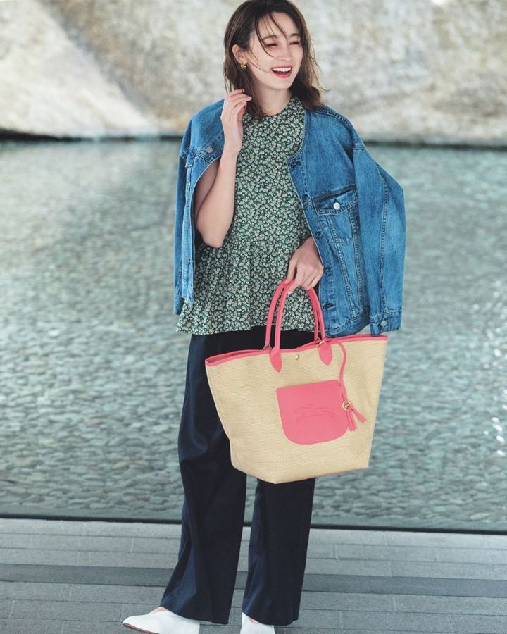 バッグ¥77,000(ロンシャン/ロンシャン・ジャパン)ジャケット¥11,880(ジャン)ジャケット¥11,880(ジャーナル スタンダード レリューム/ジャーナル スタンダードレリューム ルミネ新宿店)ブラウス¥27,500(ツル バイ マリコ オイカワ)パンツ¥35,200(ギャルリー・ヴィー/ギャルリー・ヴィー 丸の内店)靴¥27,500(ヨーク/UTS PR)ピアス¥14,300ブレスレット¥12,650(ともにココシュニック オンキッチュ/ココシュニック)