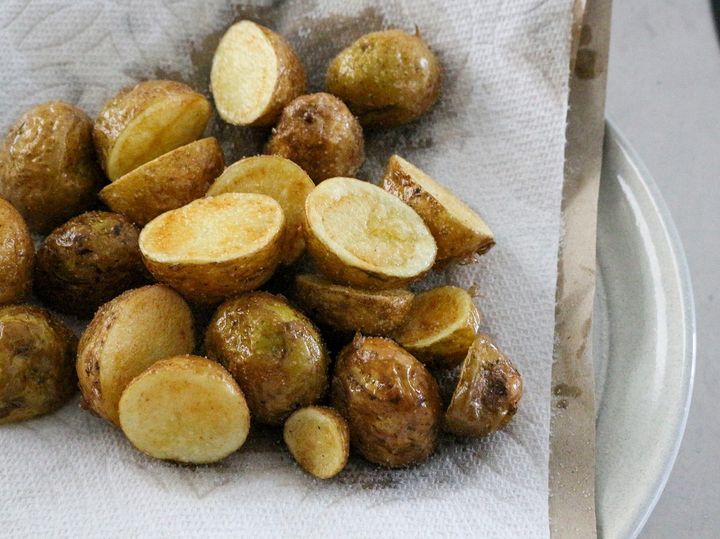 また、新じゃがではなく、普通のじゃがいもでもおいしく作れます。その場合も皮ごと食べていただきたい(苦味がおいしい)ので、よく洗い、芽の部分をしっかりと取り除くようにしてください。電子レンジにかける時間は少し長くした方が良いと思います。