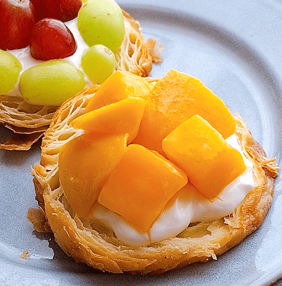 クイニーアマンのカリカリ食感と、ジューシーなフルーツの味わいがマッチします。