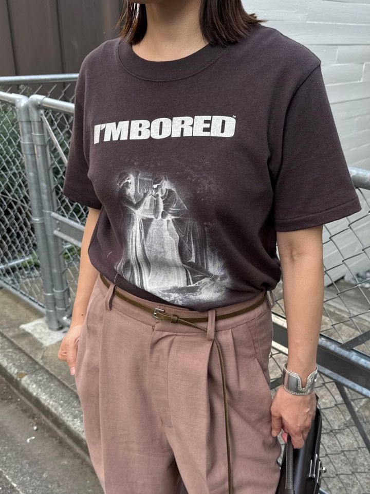 「ゲミニーは毎シーズン1アイテムは必ず買ってしまう大好きなブランドです。ブランドが得意な遊び心のあるカットソーをいつも楽しみにしていて、今回はギリシャ神話に登場する人物がサングラスをかけているプリント。幅広いコーディネートになじむからお気に入りです」Tシャツ¥22,000(共にゲミニー/ウィム ガゼット 新宿店)