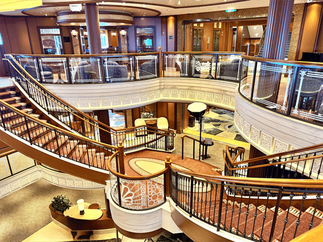 イギリスの老舗クルーズ会社「キュナード」が運航する客船です。ドレスコードがあるフォーマルなガラ・イブニングや、アフタヌーンティーなど、伝統的なイギリス文化が船内で体験できるのも魅力のひとつ。アール・デコ調のクラシックで優雅なデザインの内装は、どこを切り取っても絵になります。