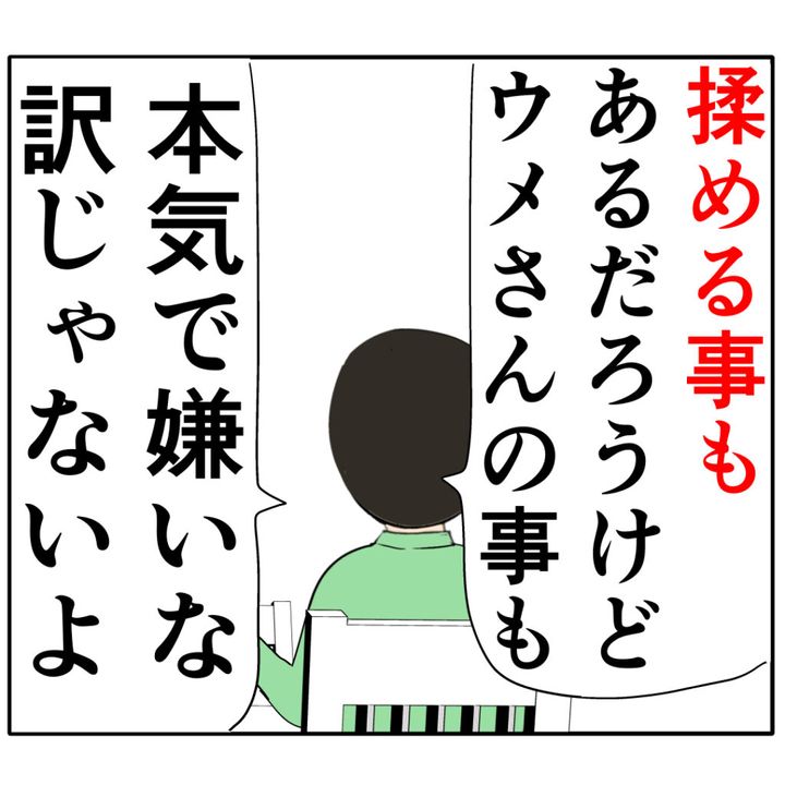 しかし次郎さんは「揉める事もあるだろうけど、ウメさんの事も本気で嫌いな訳じゃないよ」と呑気な答え。