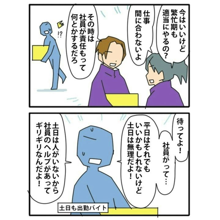 元々、アルバイト同士で、水面下で対立があったそうです。「平日メインで出勤」組と「土日も出勤」組とで、意見が食い違うことがしばしば。特に、土日は人手が足りず、社員のヘルプや派遣社員が入らなければいけないほどでした。たしかに、人手が足りない土日に、非効率な方法で仕事をしてしまったら、時間内に作業が終わらないですね…。