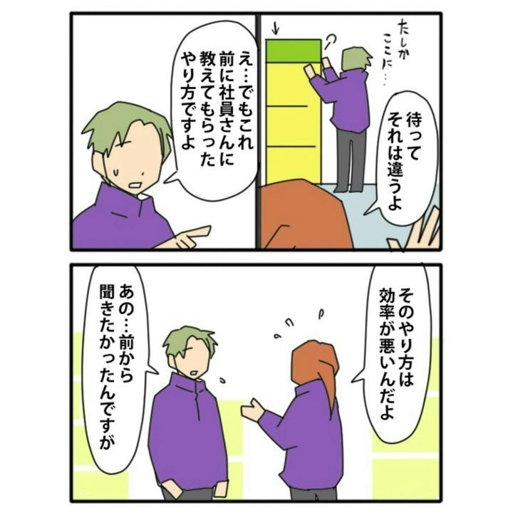 中途入社のTさんは、現場の仕事をすべて把握していません。それなのに、非効率な仕事の方法を新人アルバイトに教えてしまいました…。バイトリーダーにとっては迷惑な状況です。