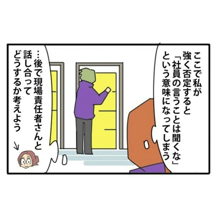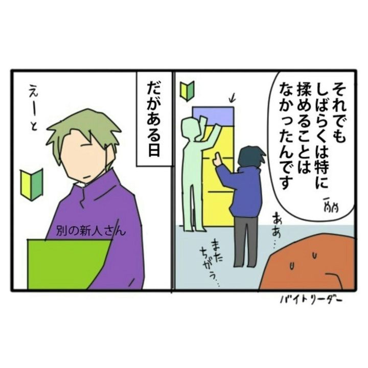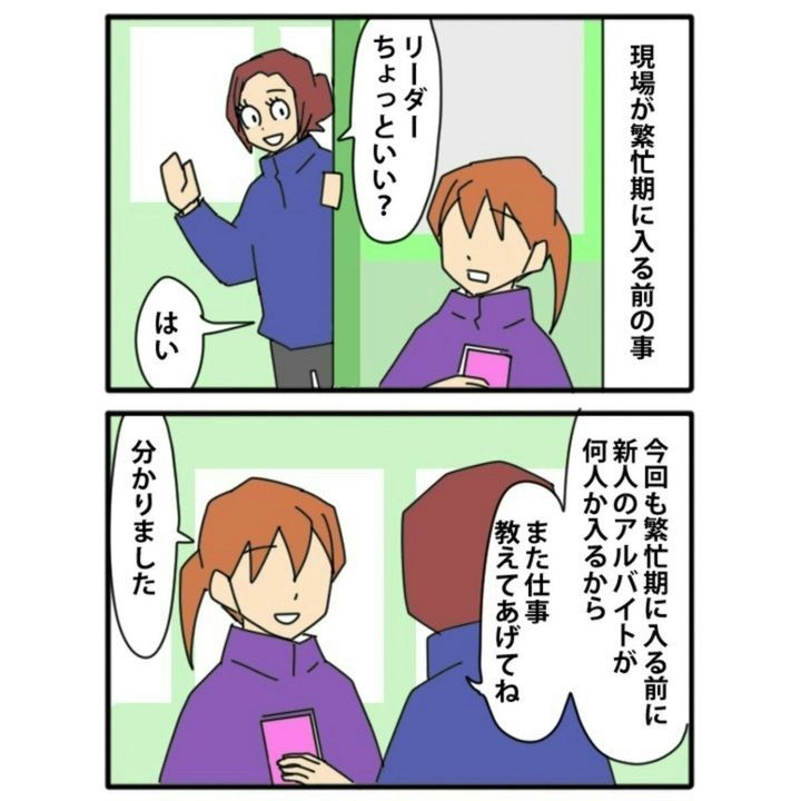 ですが、バイトリーダーは新人アルバイトが混乱するのを避けるため、あとで本来のやり方を教えようと考えます。また、Tさんの対応について、現場責任者へ報告しました。