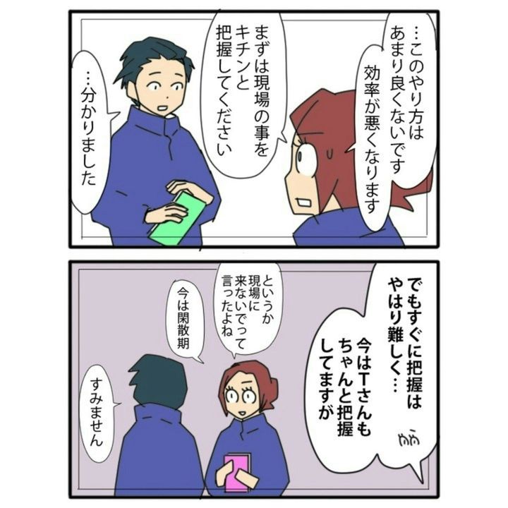 すると、すぐに現場責任者からTさんへ指導が入ります。