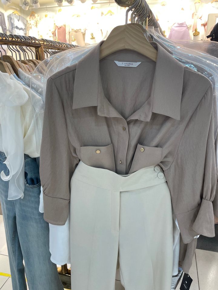 通勤服にも使えそうなシャツやニット、パンツが豊富でした✨他と被りにくい色味やシルエット・デザインが可愛いです。私はシアー素材のトップスを1000円で購入しました。肌寒い時のカーディガンとして使っています。
