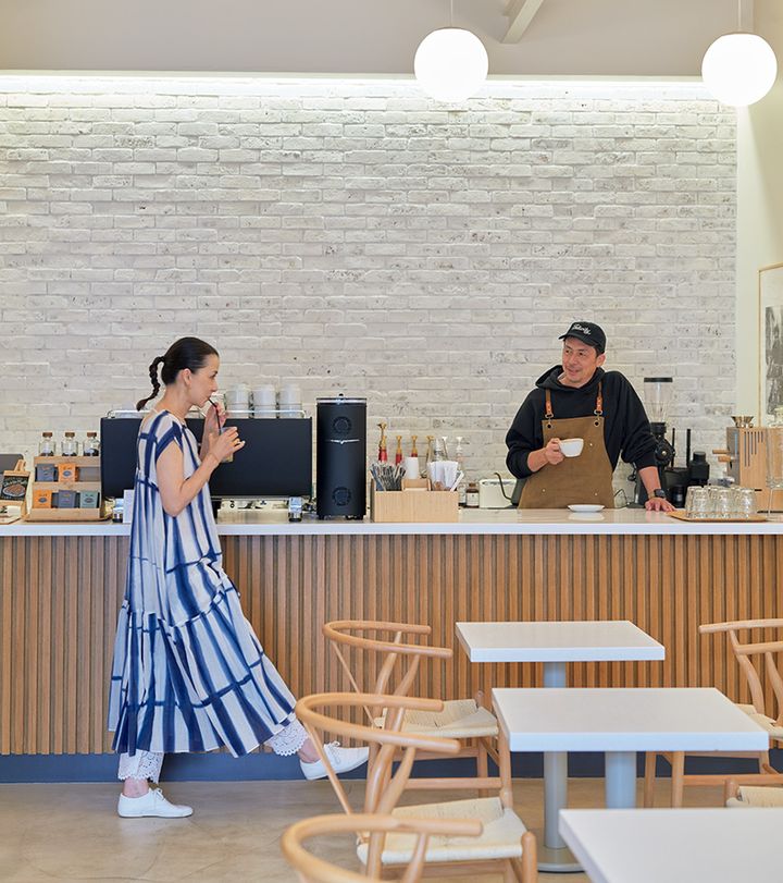 バイクショップをリノベーションした店内で、ハンドドリップ式コーヒーやチョコレートフレーバーの豆を使ったエスプレッソをいただけます。