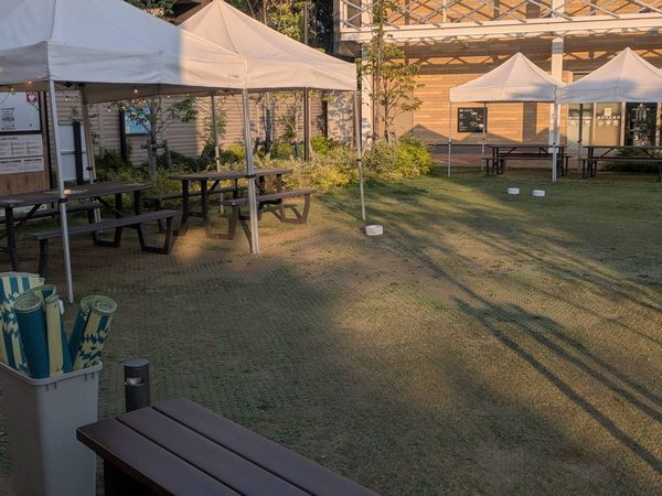 今回お邪魔した「コスギグリルマーケット」は、駅からは少し歩きますが、その分敷地が広く一棟全部がお店となっており、お店の前には芝生スペースがあるゆったりとした空間になっています。