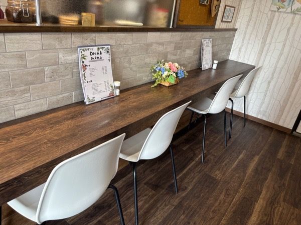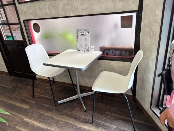 カウンター席4席と二人掛けのテーブル席が1つありますので、こちらでドリンクと一緒にゆっくり頂く事も出来ます。