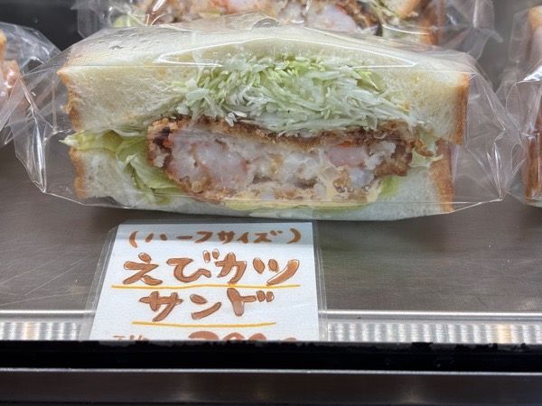 断面がとっても美しくそしてボリューミー!えびカツサンドは390円。