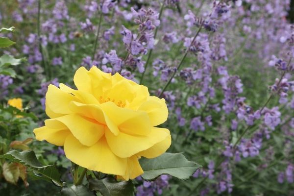 サンクガーデン入り口と、園内奥の資料館手前には紫色のネペタ ウォーカーズロウが一面に咲いていました。