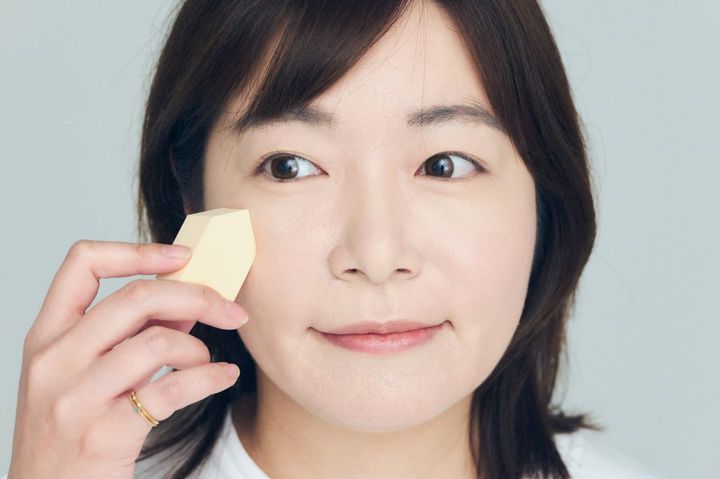 PROCESS ① 化粧水を含ませたスポンジで叩き込み、ファンデの密着感をアップ