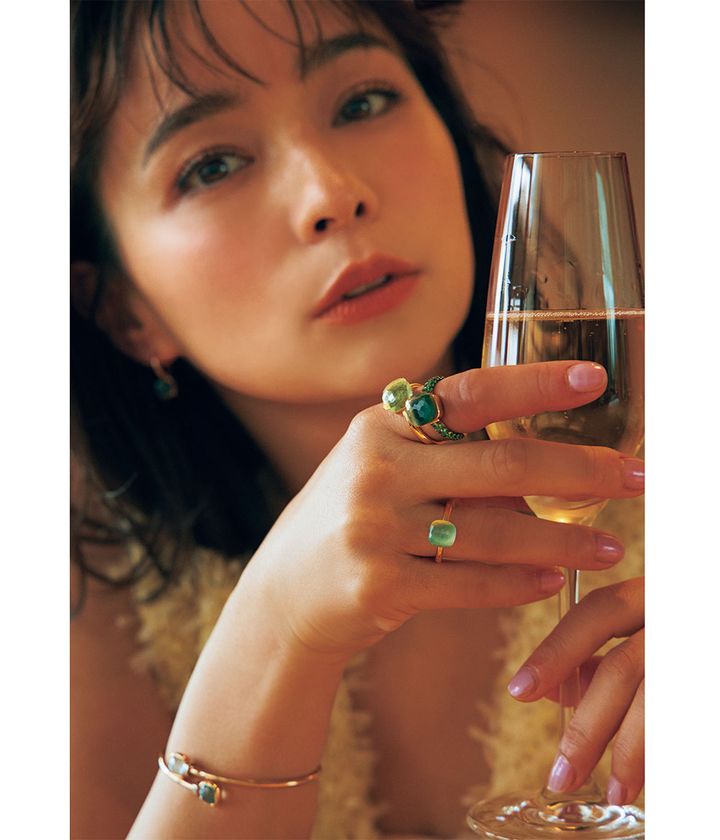 ストーンが本来持つ美しさを最大限に際立たせるようあえてシームレスにデザインされた〝ポメラート〟のアイコニックな「ヌード」コレクション。「好きな色って子どもの頃から変わらない」そんなローサさんの言葉通り、多彩なパレットから自分らしさが宿った生涯の相棒をチョイスして。