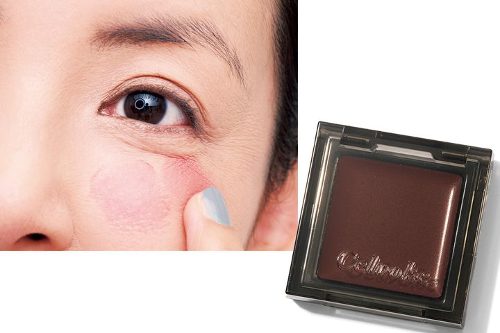 乾燥しないよう練り系でしっとり感を。チークゾーンにまで被せ塗りし、血色感も狙います。