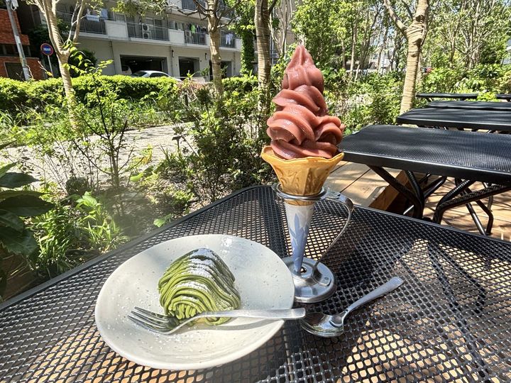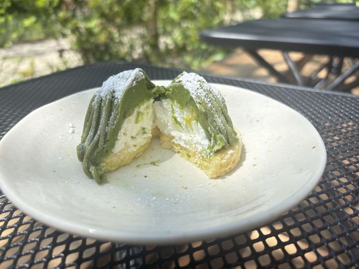 ほんのり苦い八女抹茶クリームの中には、なめらかな生クリームがたっぷり。モンブランケーキには珍しい白餡も入っていて上品な甘さに仕上がっていました。土台のスポンジケーキもふわふわで、クリームとの相性抜群です。
