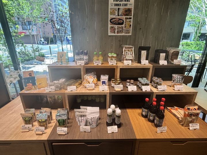 レジ奥の黒板には、九州地方の地図の上に各県おすすめの商品が並びます。定期的に入れ替わっているので、訪れた際は要チェック! あちこちに九州を感じる工夫がされていて、見ているだけでも楽しめました。